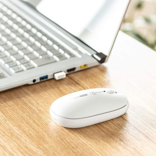 bluetooth接続のワイヤレスマウスでパソコンとペアリングするだけで使用できるため、USB端子が無いパソコンやタブレットなどでも使用できます。