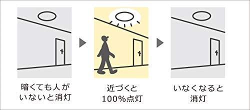 人がいないときは消灯、人が近づくと自動で点灯するため、照明の消し忘れがなく電気代を節約できます。
