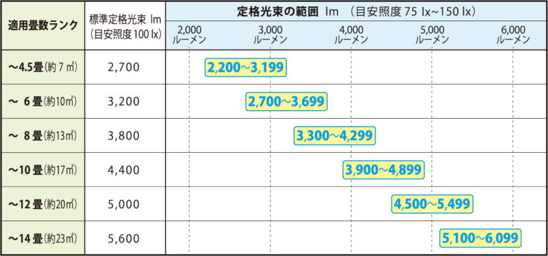 和室の場合は畳数、洋室の場合は部屋の広さ(㎡)にあわせて最適な明るさの製品を選びましょう。