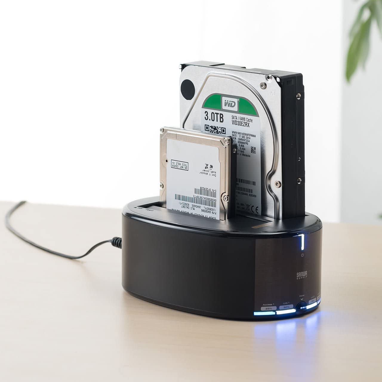 差込口が2個搭載されているHDD/SSDスタンドはデータ保存やディスク換装を短時間で効率よく行えるため、おすすめです。