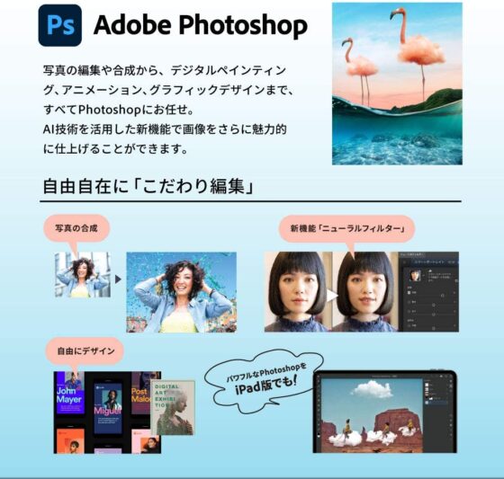 Adobe Photoshopは写真やデザインなどで使用される編集ソフトです。