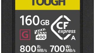 • CFexpressカードは、SDカードよりも高速な記録速度を実現する次世代の記録メディアです。ラージサイズフォーマット(中判サイズ)ミラーレスカメラでは、高画質・高感度撮影や連続撮影などの用途で高速な記録速度が求められるため、CFexpressカードが採用されるケースが多くなっています。